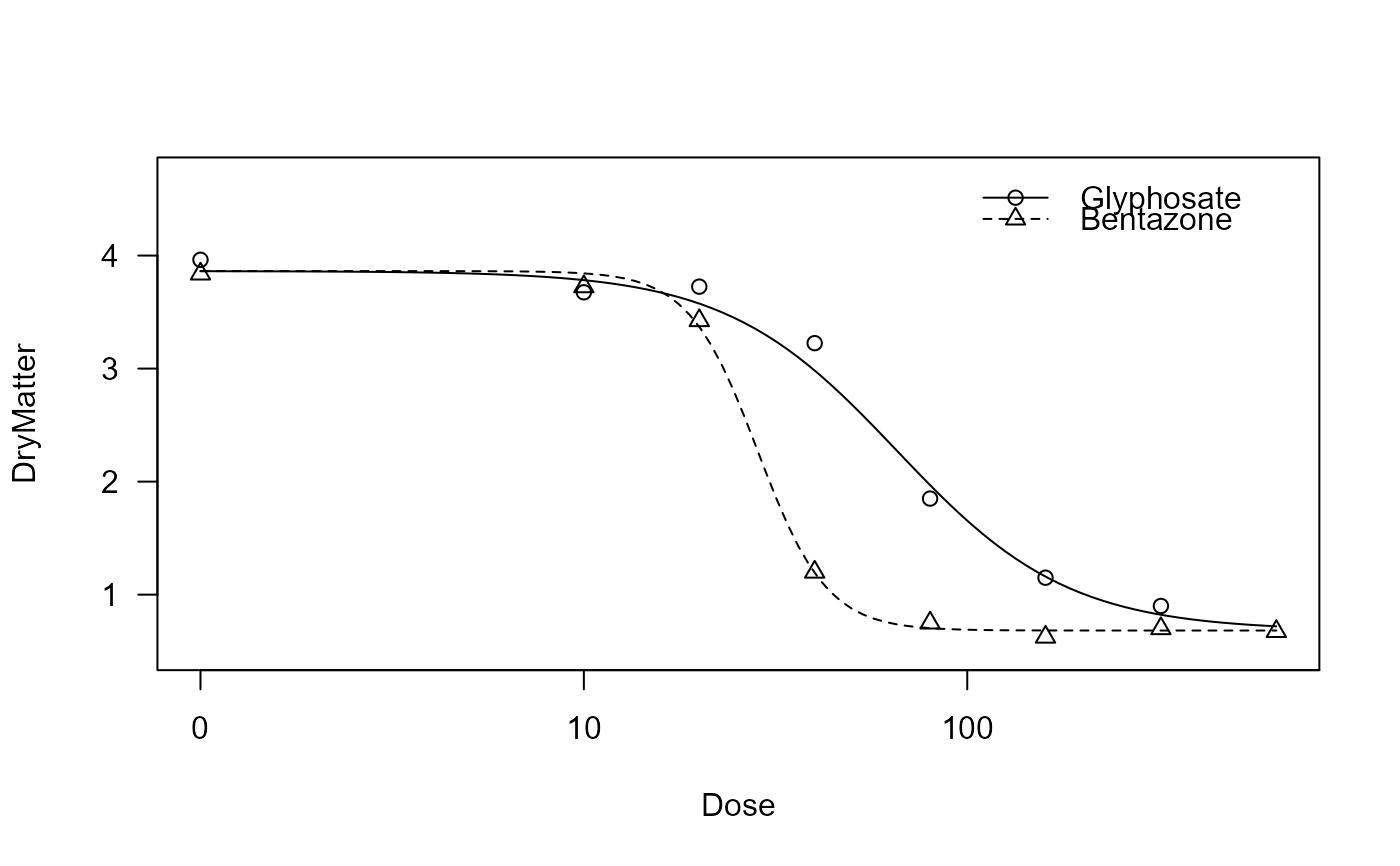 S.alba.RdData are from an experiment, comparing the potency of the two herbicides glyphosate and bentazone in white mustard Sinapis alba.