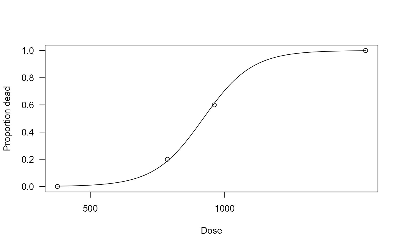 plot(acute.inh.m1, xlab = "Dose", ylab = "Proportion dead")