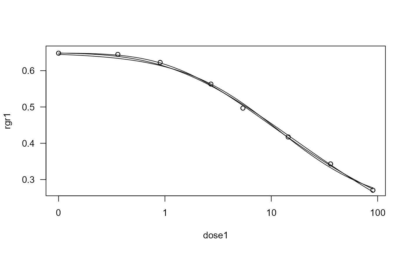 #> Model fitted: Log-logistic (ED50 as parameter) (4 parms)