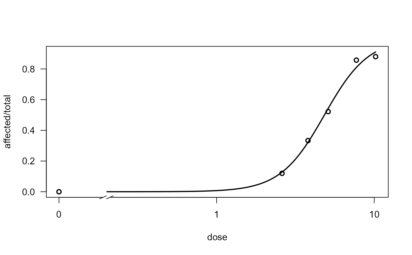 #fitl.glm <- glm(cbind(affected, total-affected) ~ log(dose),
