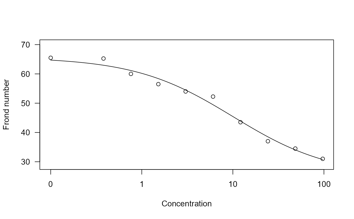 plot(lemna.m1, xlab = "Concentration", ylab = "Frond number")