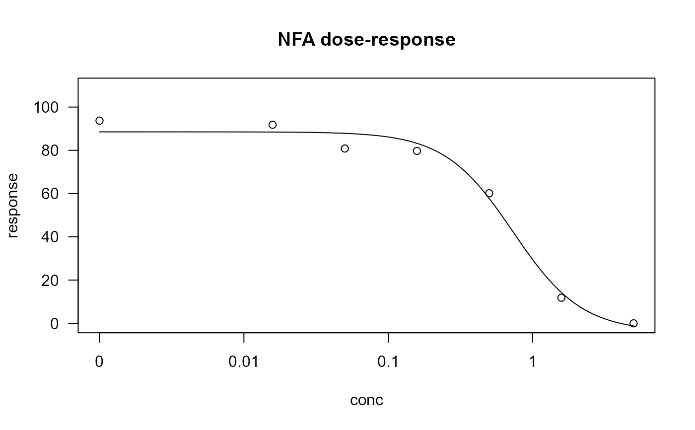 nfa.m1 <- drm(response ~ conc, data = nfa, fct = LL.4())